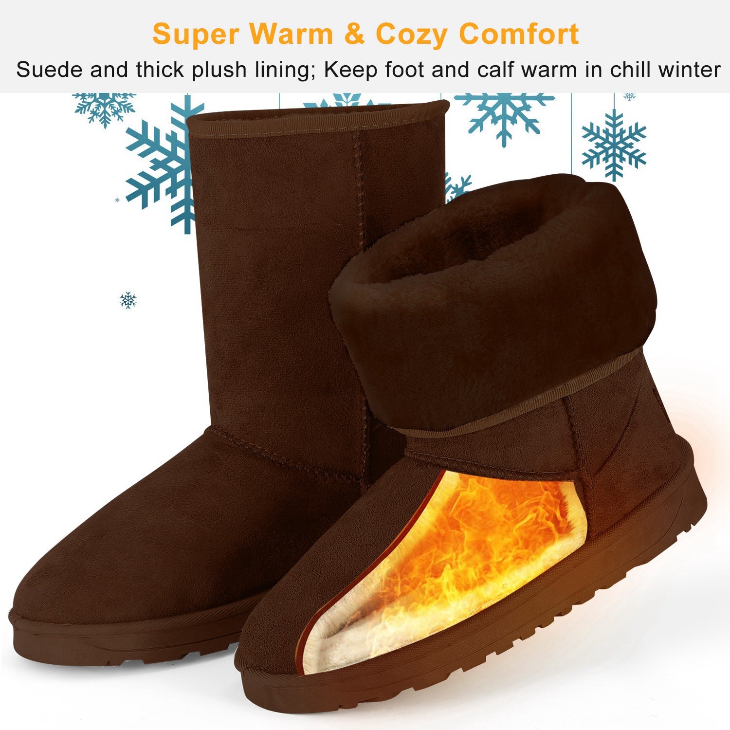 Women Ladies Snow Boots Waterproof Faux Suede Mid-Calf Boots Fur Warm Lining Shoes