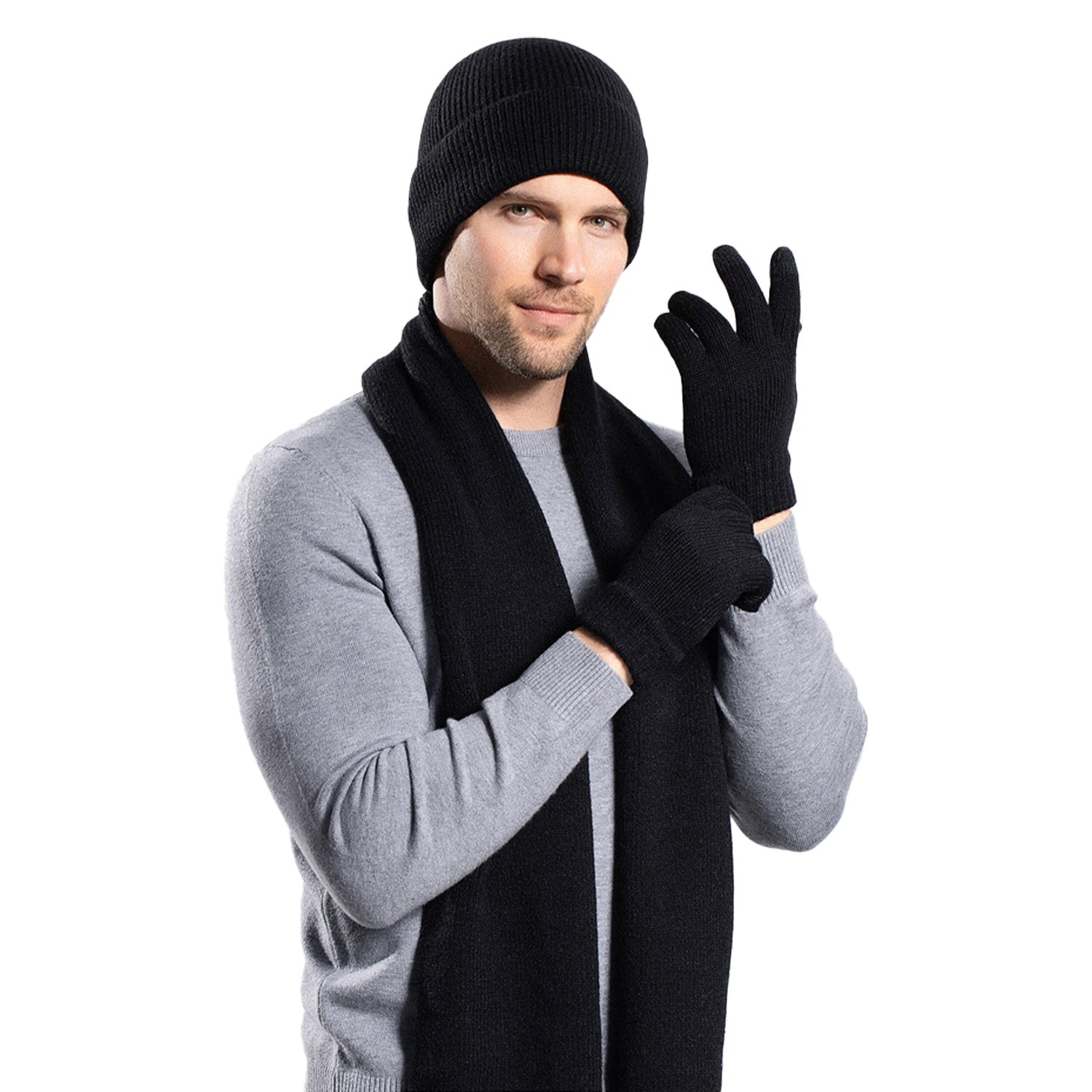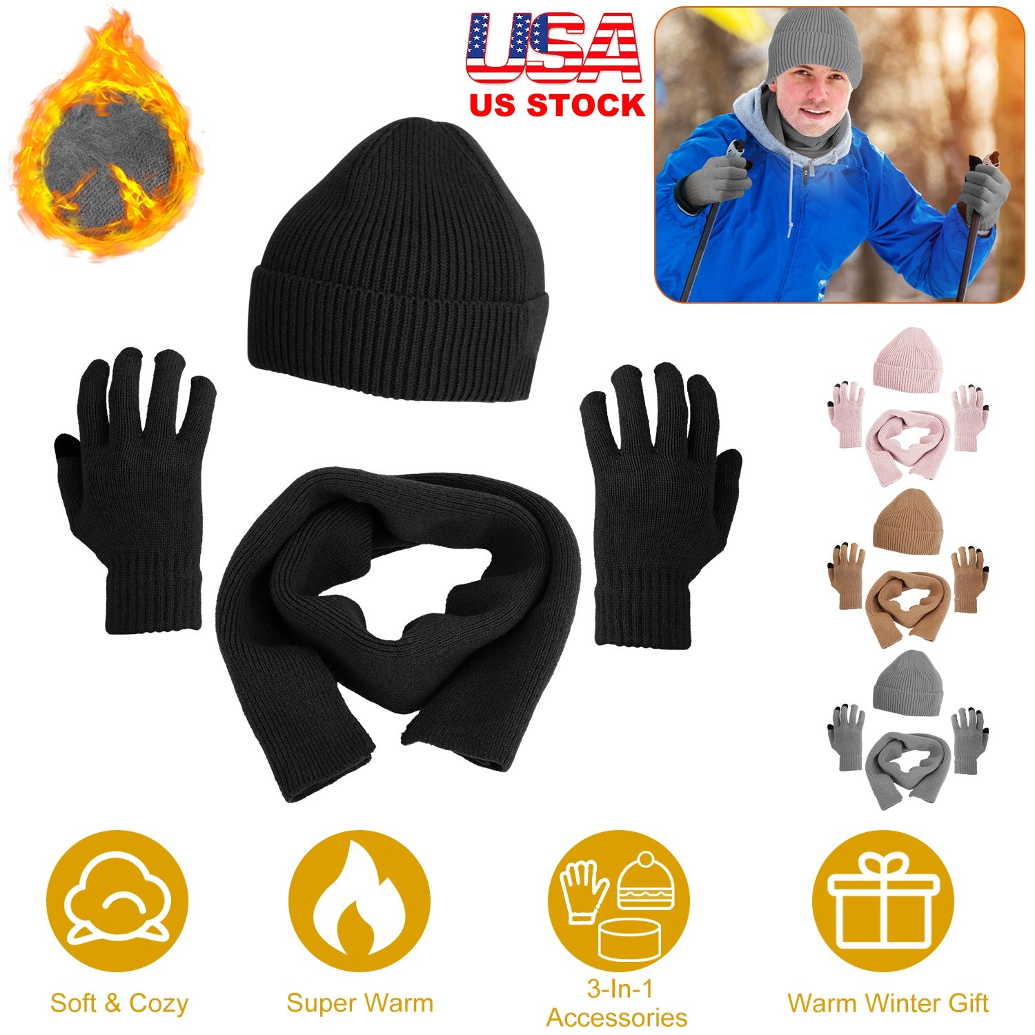 Winter Knitted Hat Scarf Gloves 3Pcs Winter Warm Beanie and Touch Screen Gloves Long Neck Scarf Set Knit Beanie Skull Cap Neck Warmer Anti-Slip Mitten