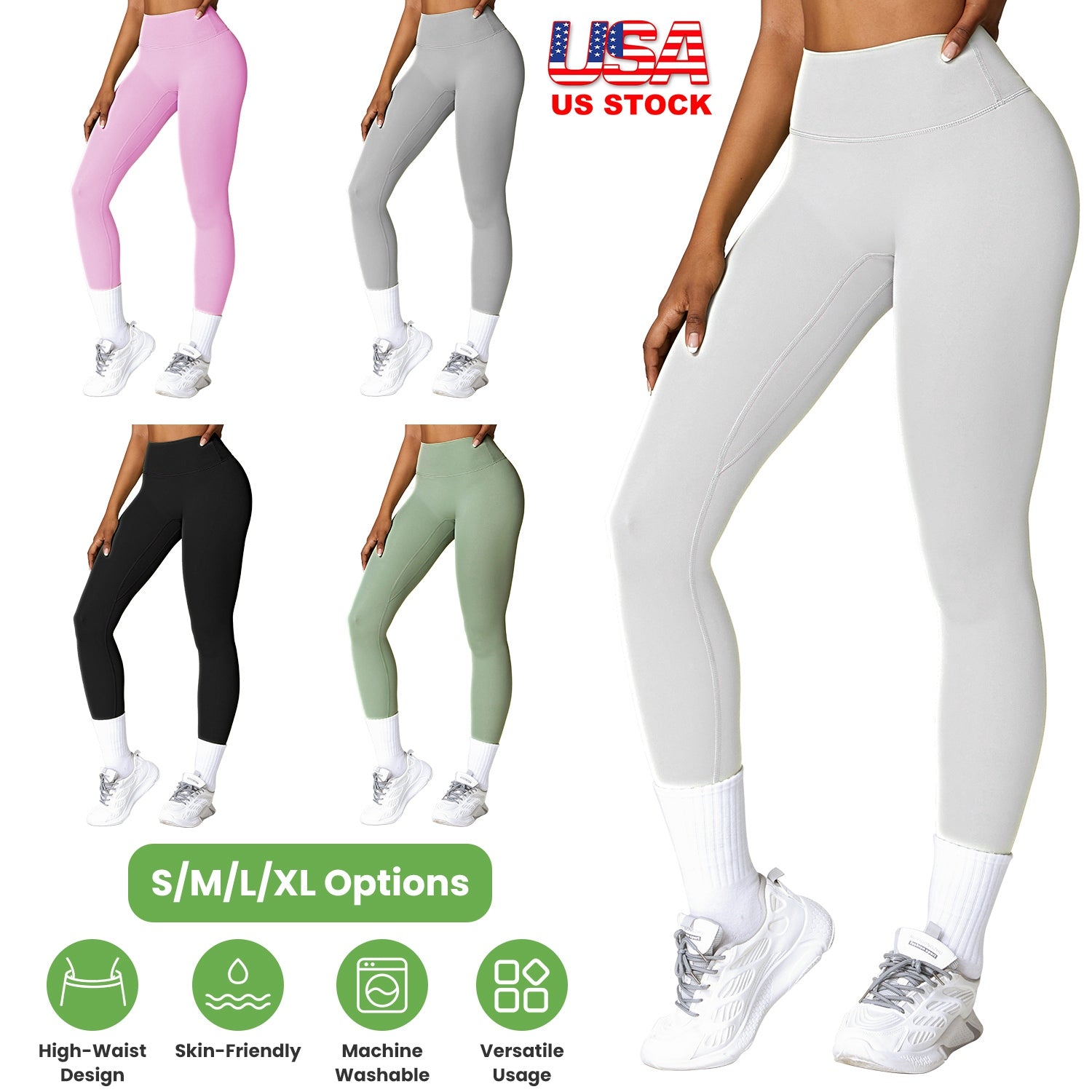 Women\'s High Waist Workout Leggings Tummy Control Compression Yoga Tight Pants Gym Pants Athletic Running Leggings with 25In Inseam No Front Seam