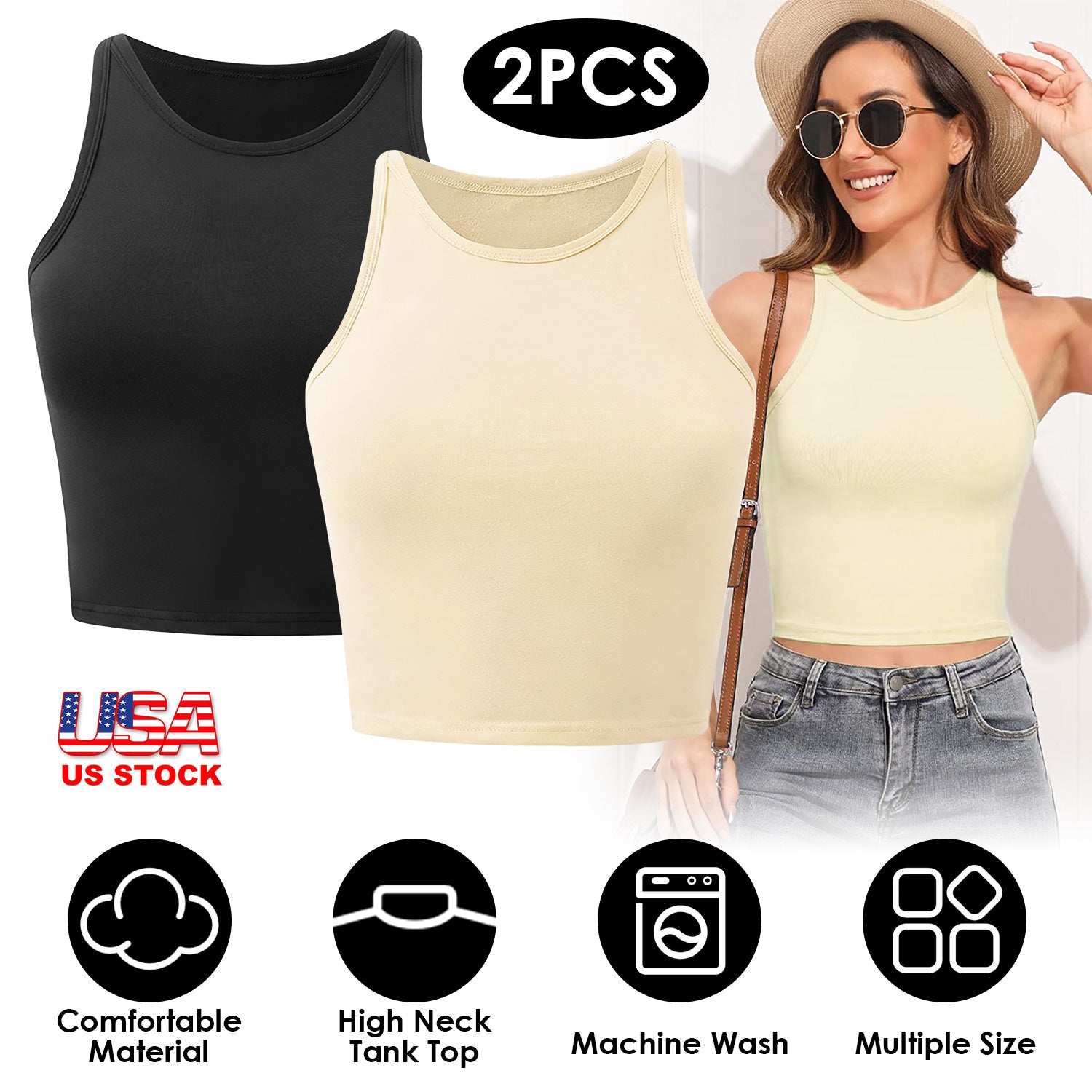Women Sleeveless Cropped Tank Top High Neck Crop Racer Back Workout Top Machine Washable Summer S M L XL 2XL