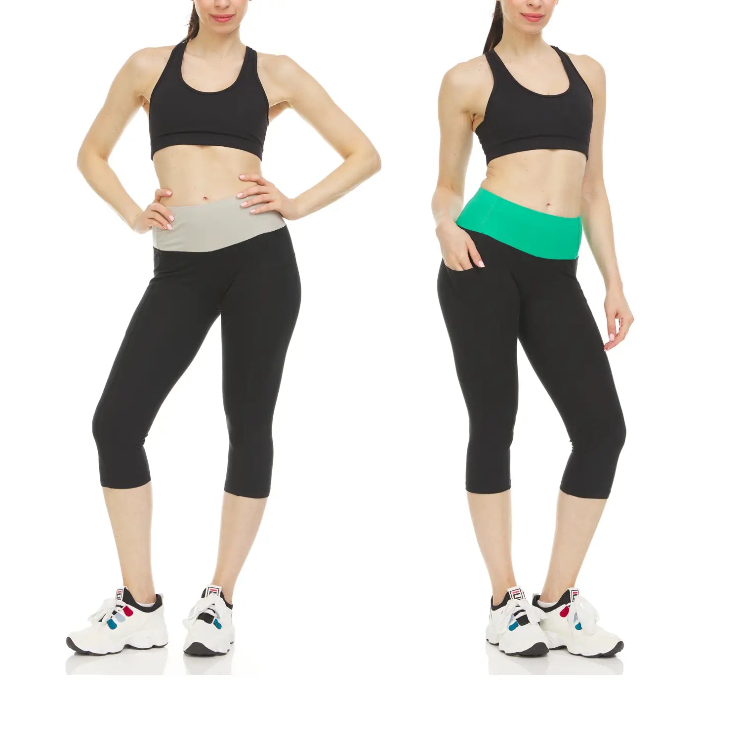 Women's Active Performance Yoga Stretch Capri Leggings Available in 2 Pack